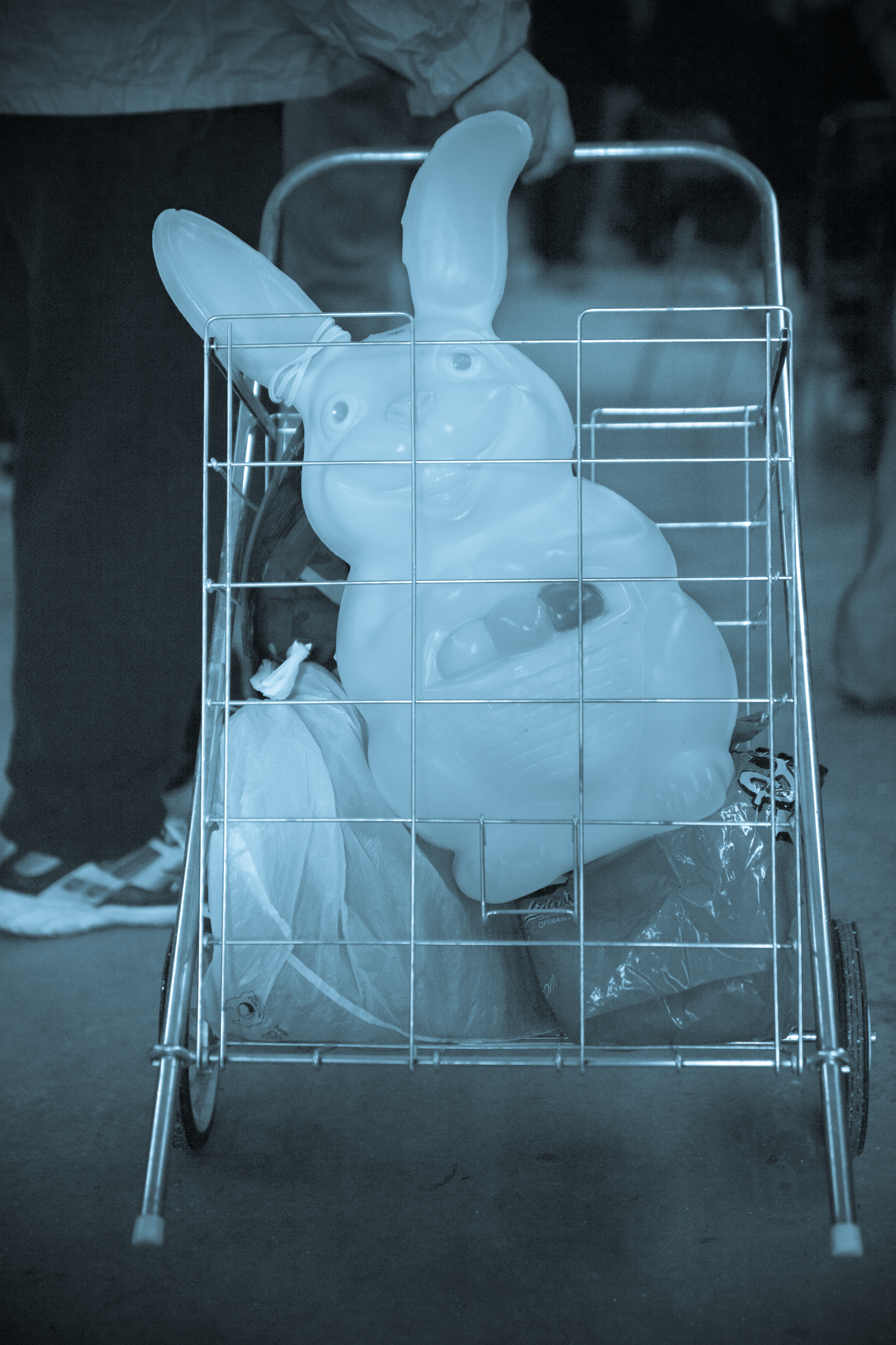 Love the caged blue bunny…