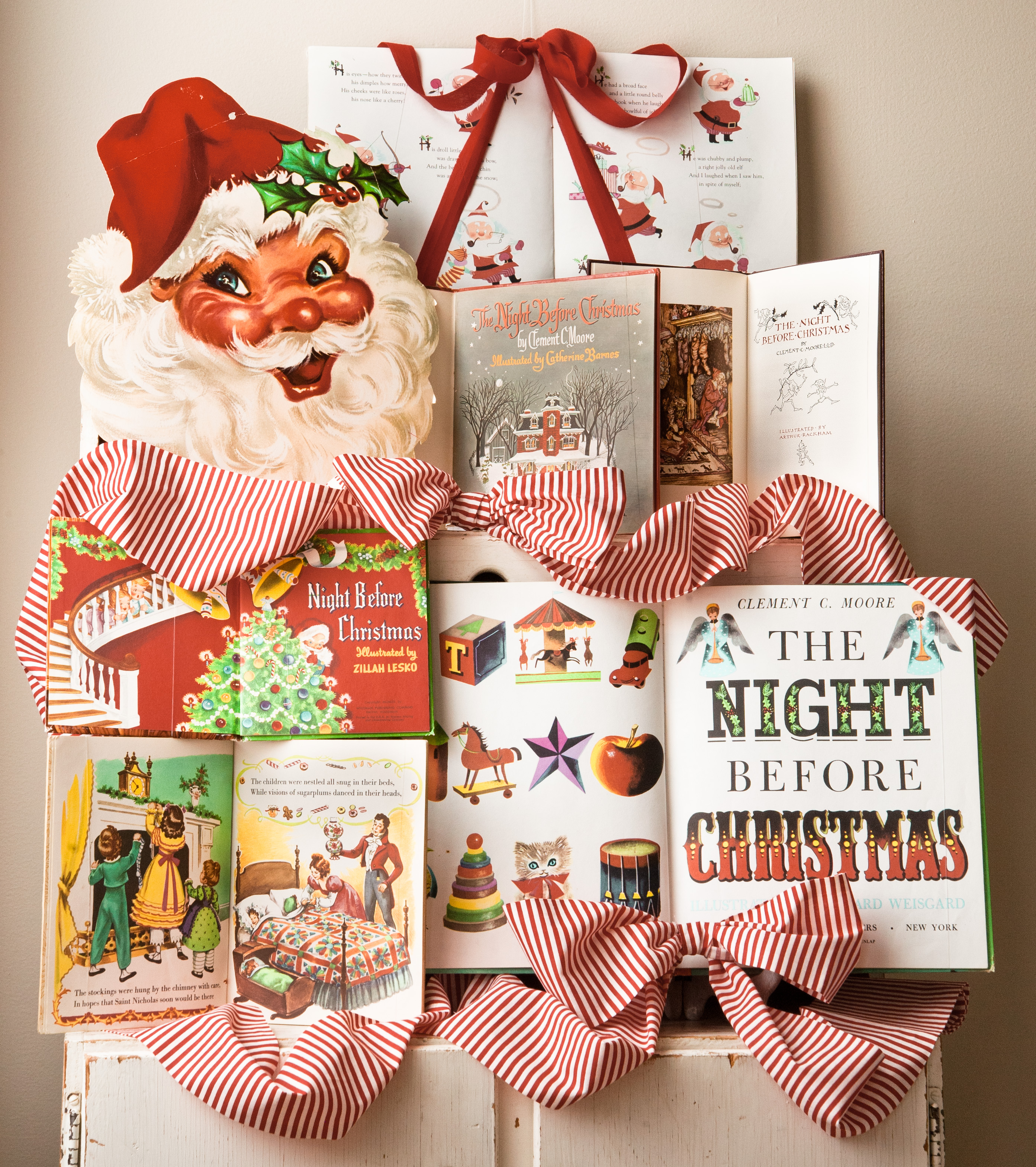 Editions of The Night Before Christmas, Clockwise from Top: Illustrated by Gyo Fujikawa (and my favorite contemporary version); illustrated by Arthur Rackham. Weathervane Publishing, 1976, Illustrated by Leonard Weisgard, Grosset & Dunlap, 1949; illustrated by Corinn Malvern, Golden Press, 1949; illustrated by Zilla Lesko, Whitman Publishing 1943; illustrated by Catherine Barnes, Whitman Publishing, 1960.