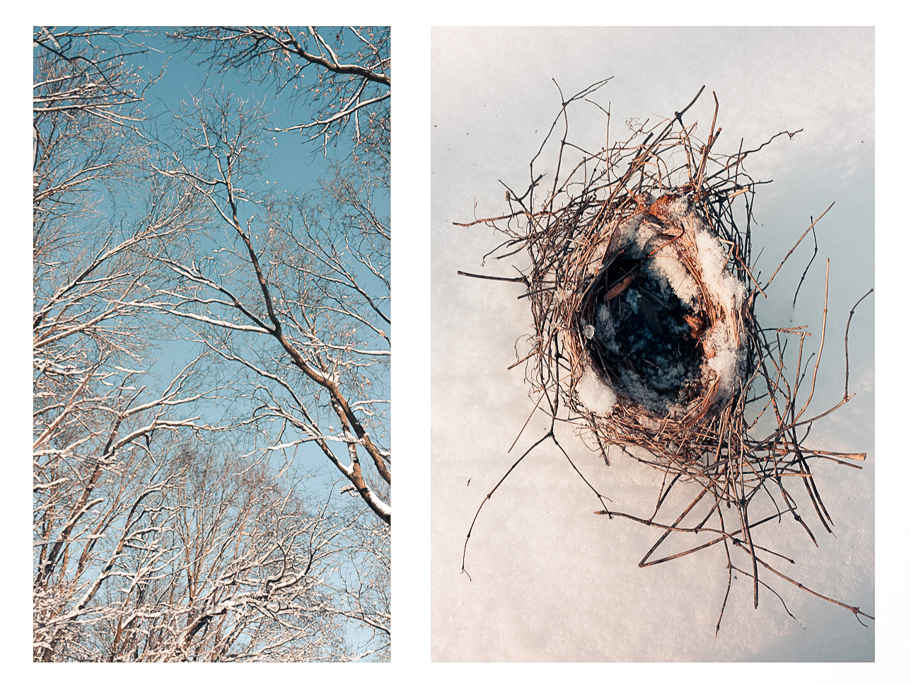 Trees like to tangle up together, in the sky and on the earth. The form emerges later, making sense at the end. In the beginning, you might have only a few twigs and a desire for home. Eventually, either you unwind, or the trees do – and then you start again.