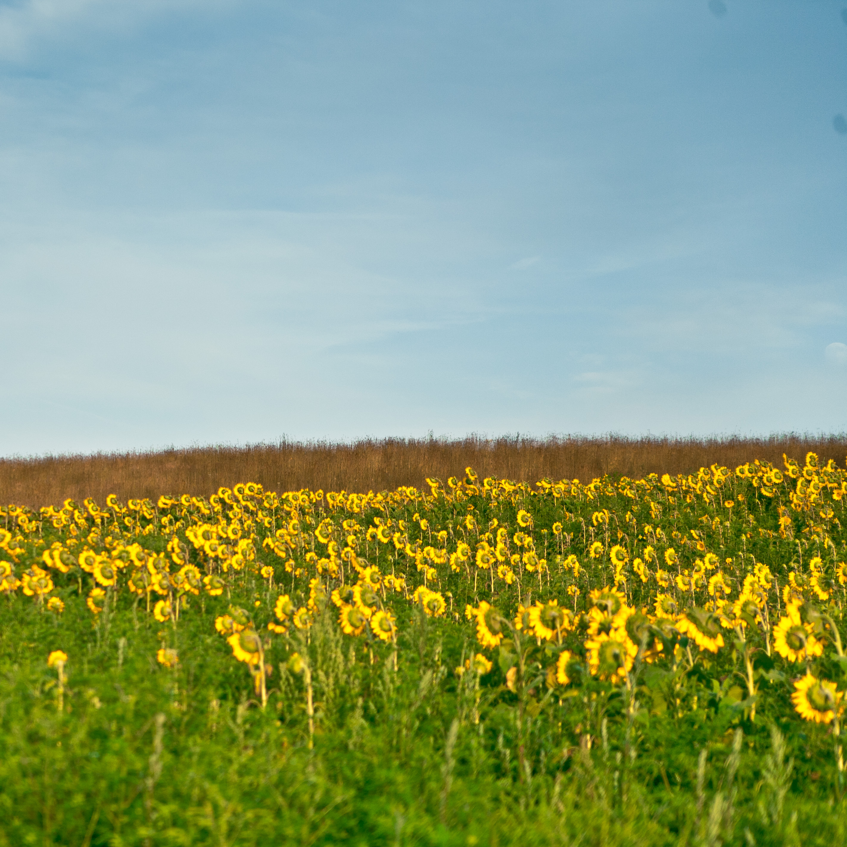 The sunflowers are a little sparser this year, but no less delectable. Birds blast out of the golden stubble of last year’s crop, staking their claims to the coming flush of seeds, which the bees labor and bumble upon – tirelessly, painstakingly dragging pollen from one tiny pistil to another across the center of each glowing orb.
