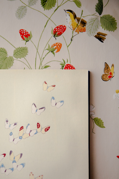 How is the strawberry wallpaper from our old kitchen on Guilford in this photo? Amazing. And I wish your ankle didn’t hurt.