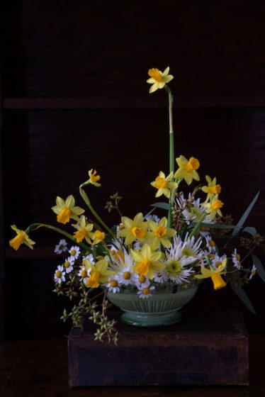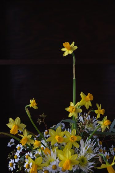 The daffodils and mums, and the eucalyptus buds and the chamomile on necks as thin as capellini – all looked like stars, and therefor, shining.