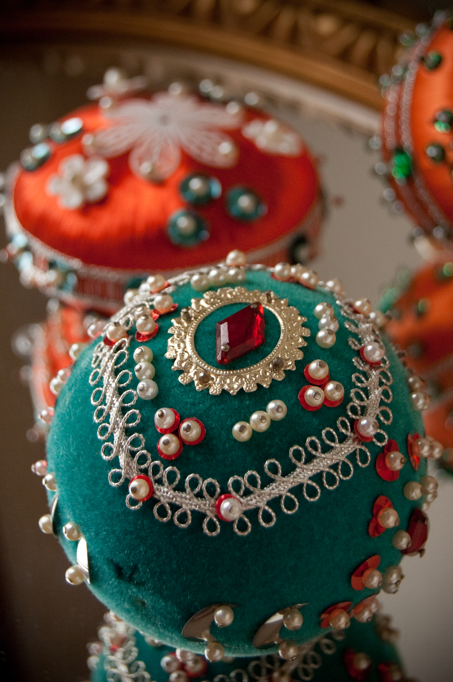 I found them, alright, in people’s driveways and basements, in bags at church sales, and received more than a few from indulgent friends who knew that no more expensive gift could, in my eyes, hold a candle to a quarter’s worth of styrofoam and sequins. Having divied the booty up even steven, as twins are wont to do, I sent Pammy her pile and of course, kept right on accumulating floss covered orbs erupting with sequins and ribbons and beads like some sort of Christmas acne. Immoderate in all things priced under $1 and Christmas related, my approach was as always, ‘the More, the Merrier.”