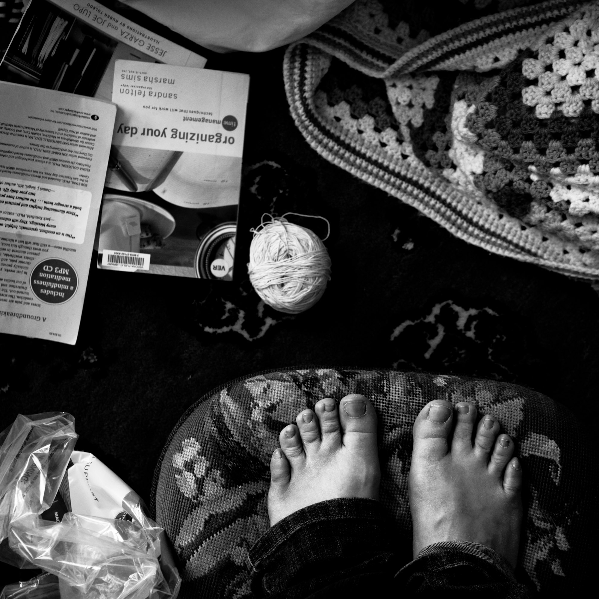 The terrible irony is that the shame we feel about our messy living spaces is the very same emotion that keeps us from just emptying all our stuff into a trash can, and moving on with our lives. I’m ashamed I haven’t finished the project I started with that yarn, so I can’t get rid of it. I’m ashamed I gave in to the fantasy of selling afghans on Etsy for extra income, so now they tower in colorful columns on the floor of my room. To admit that I won’t do what I imagined with the countless layers of incompletes accumulating in my home seems like admitting that I am weak and lazy. And who was every motivated by that?